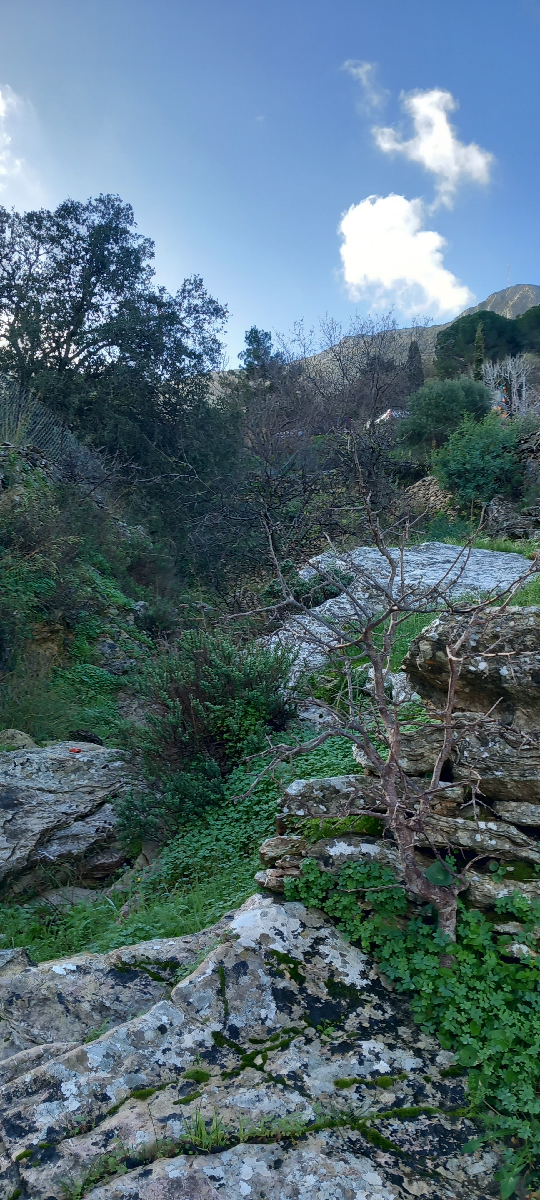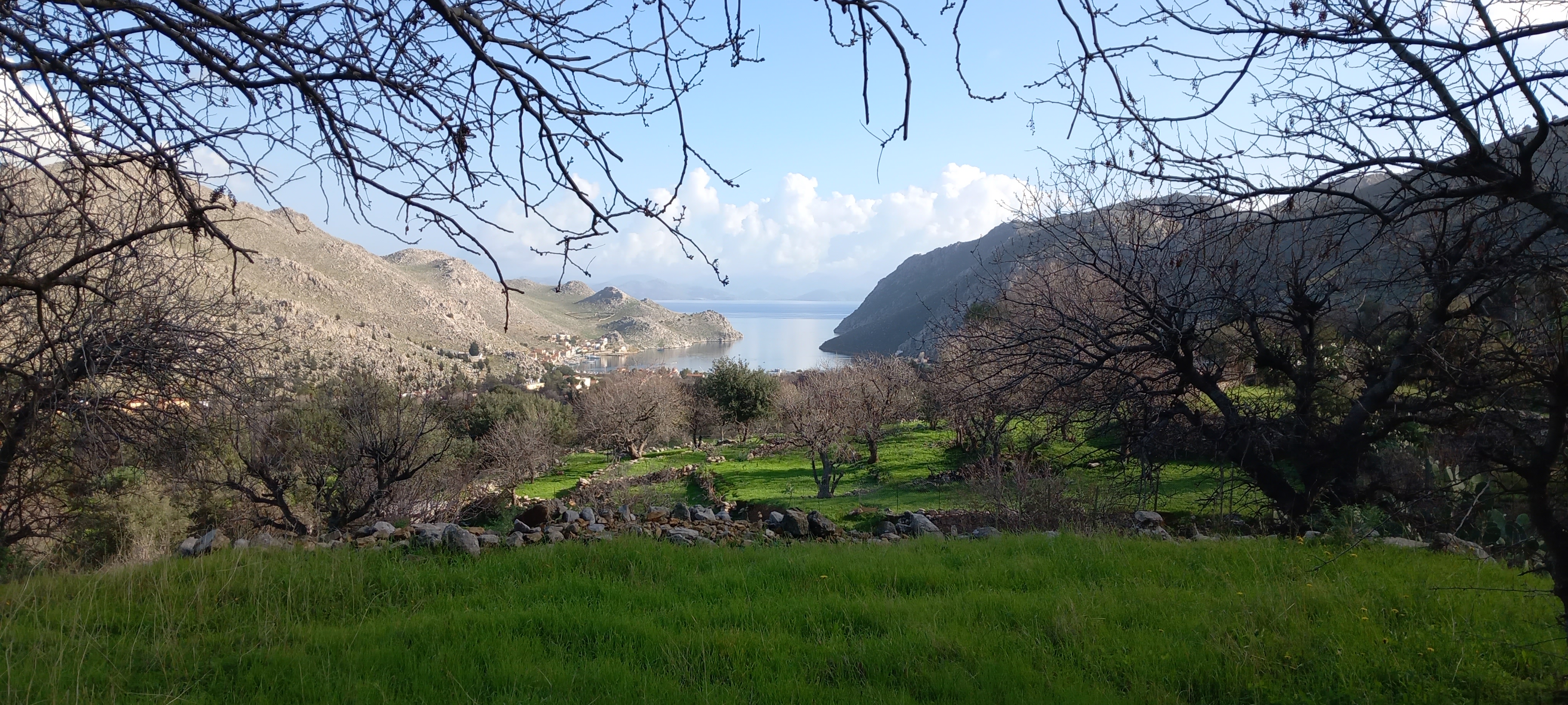 It was around 17 degrees yesterday and according to our new Chinese-shop garden thermometer we were in the red zone for humidity, which explains why the courtyard was soaking wet even though it hadn’t rained. Still, a lovely morning for taking a wander and admiring the green, and I’ll shut up now and leave you with some photos so you too can admire how green Symi looks right now.