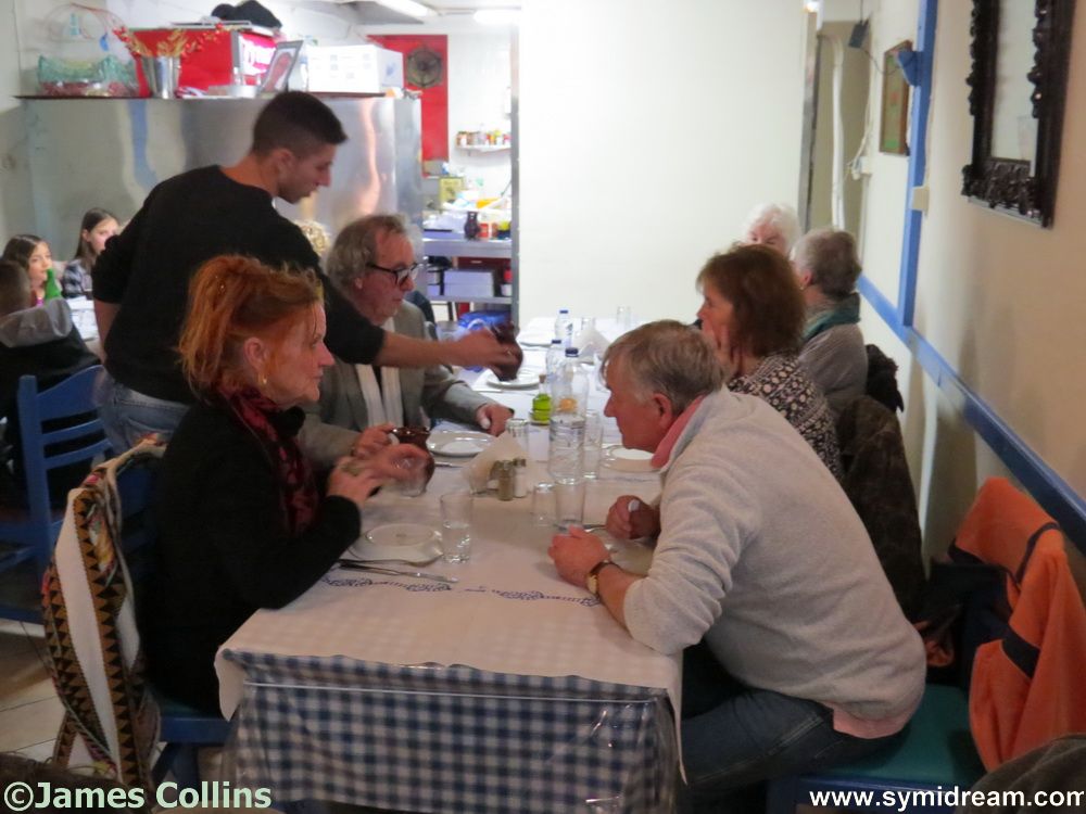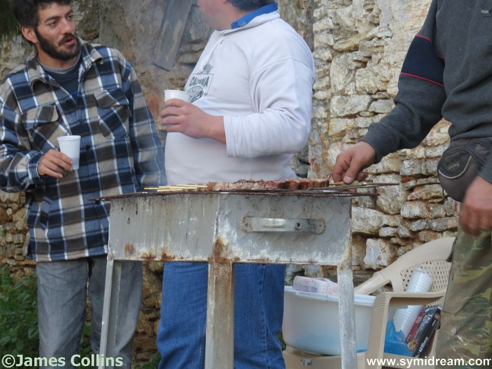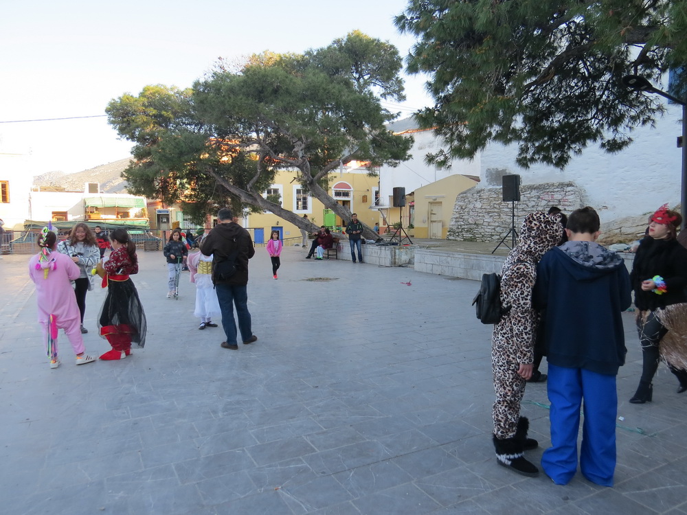 There were a few celebrations taking place on Saturday night in Horio. The scouts had a party in the square (the photos were taken early in the event) with souvlakis and later fireworks, games and music. Instead of buying a ticket, guests were asked to bring something from the kitchen cupboards that would then later be donated to the needy, which was a nice idea. Later, Georgio’s was busy with birthday parties, locals out for a Saturday night and there was the usual friendly atmosphere – and some very juicy pork chops.