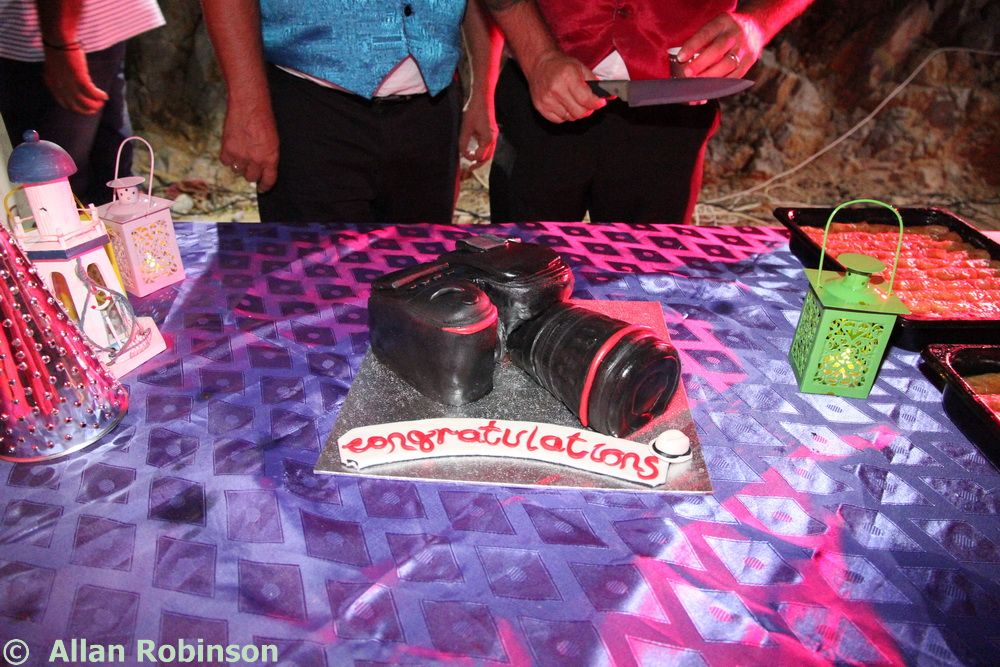 The surprise birthday cake. Our CP day was also Neil’s 50th birthday and we had no idea that Yiannis and his family had arranged this surprise cake for him and us. It was beautifully made in the shape of a camera and it was a shame to cut it, but we did and it was perfect.