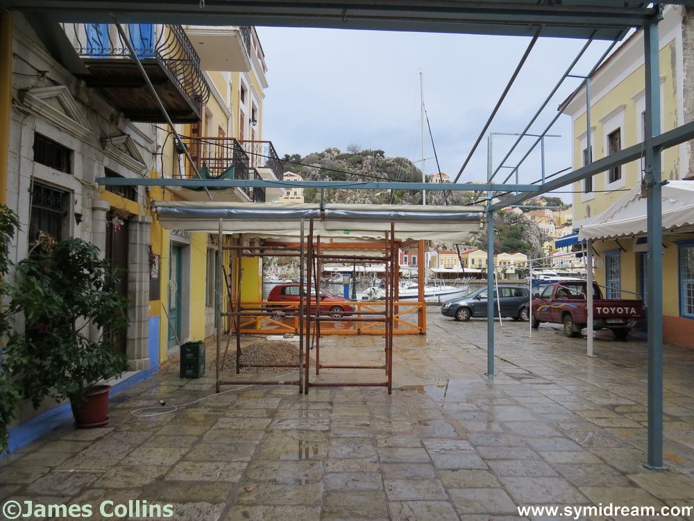 Talking of summer. There is already some work going on in the harbour as some businesses are either changing or already preparing for the next season by getting some building work done while it’s quiet and, on most days, dry. There are still three months to go before Easter but that time will fly, and the season won’t really kick off until after then. There is sometimes a quiet gap after the festivals of Easter and before the charter flights start bringing regular tourists, but the good news for travellers is that the boat timetables are now up and available for the summer. The Blue Star http://www.bluestarferries.com/el/ can be checked and booked online and the Dodecanese Seaways timetable is available for the next several months (up until October 31st) and you can book the catamarans online there to. The Panagia, the larger ferry, can’t be booked online (unless you book separate tickets to Panormitis, its first stop, and then onwards, or so I am told), and for all travel news of flights and boats, you should check out Andy’s blog at Symi Visitor. As I always say: if you are coming independently, always check your boats before you buy your flights. There are currently no extra evening boats scheduled from Rhodes (only Wednesday pm and Friday evening on the Blue Star) so there’s no point arriving at eight in the evening and thinking you will get a boat straight to Symi.