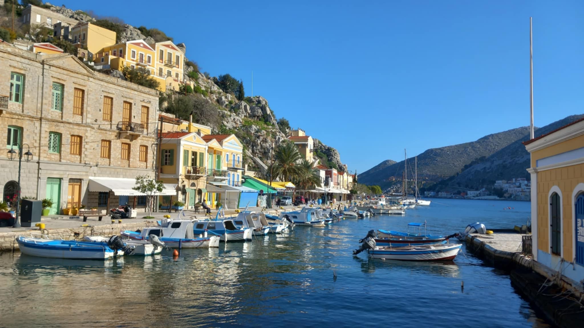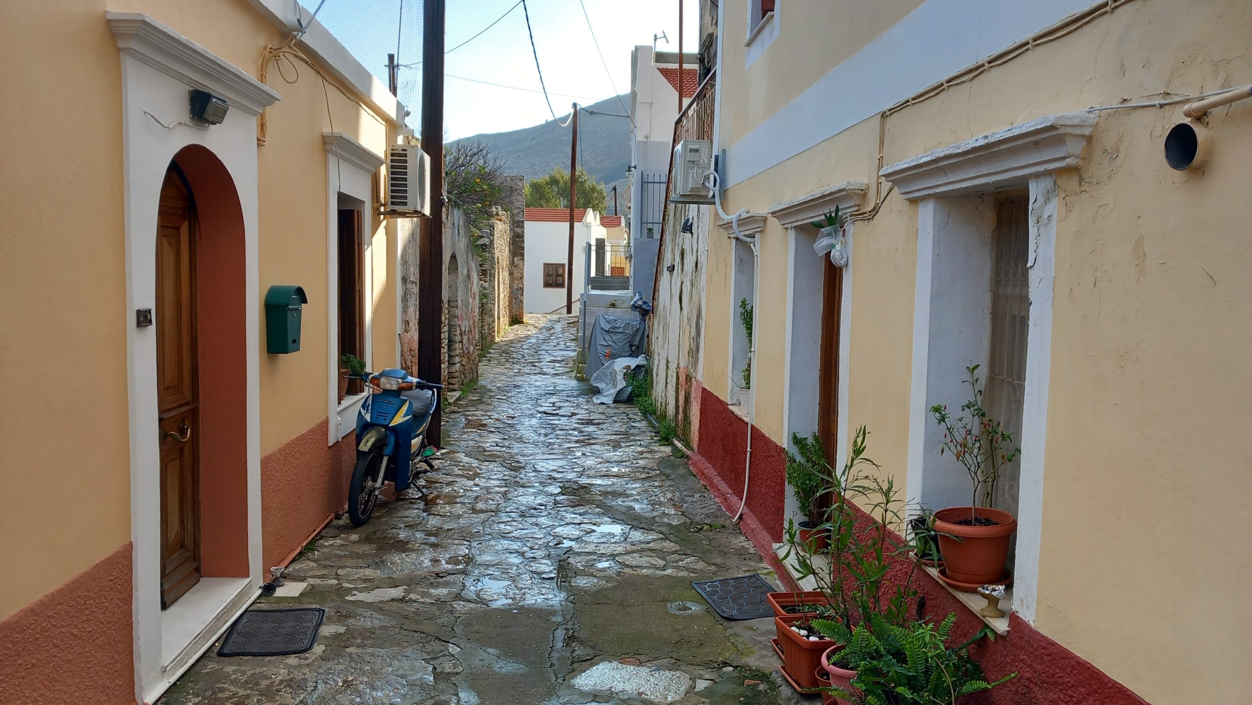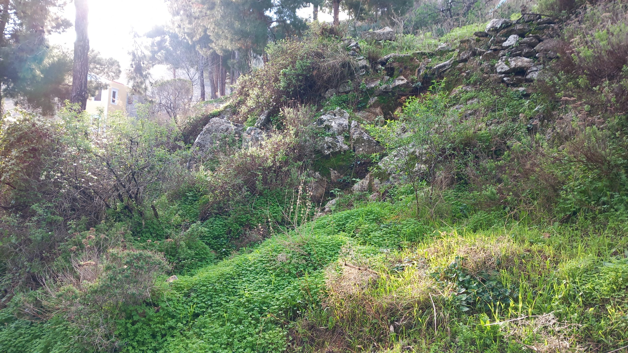 Three photos today to show Symi in spring: The clear blue sky and sea, the abundance of green, and the dampness of the stone.