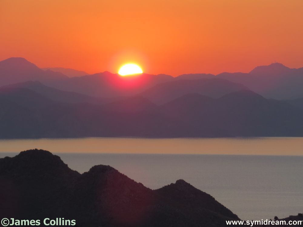 Well, they’ve always been here, I am glad to say, but yesterday I was up early enough to catch one. I was so early I nearly missed it and had made my way up the road and towards Periotisa just as the sun appeared over the Turkish mountains. As you can see, we were expecting another hot day.