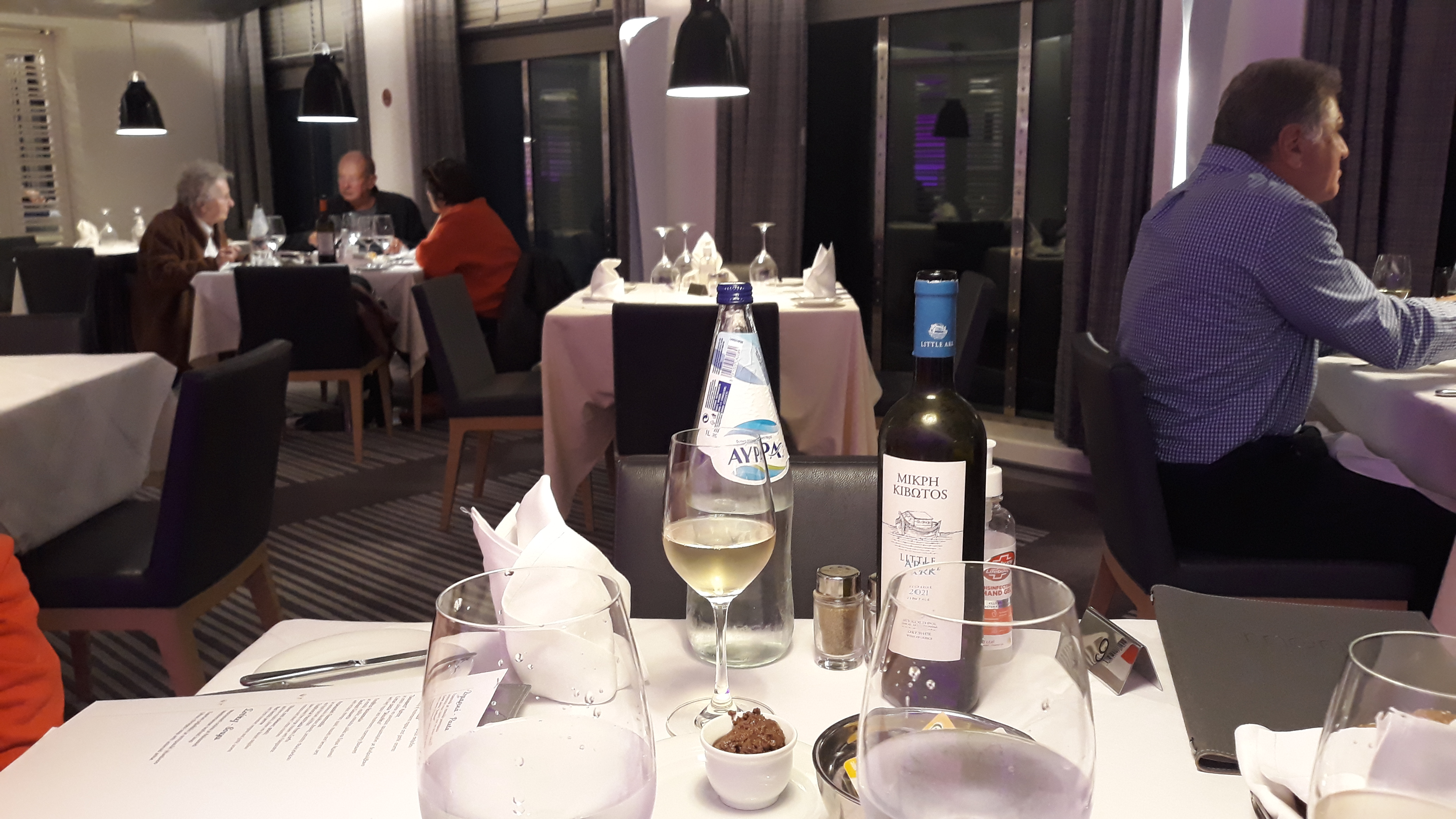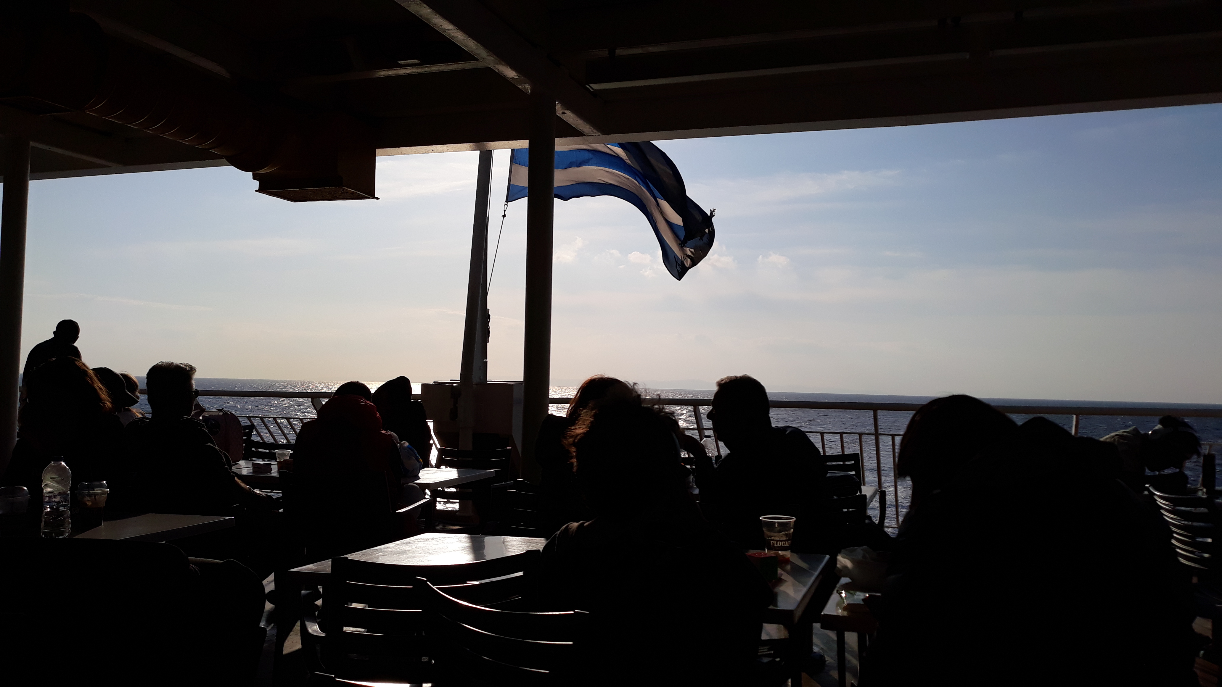 It depends on the ship. The Patmos is my favourite because it has a very reasonably priced a la carte restaurant which adds more romance and glamour to the trip. It also has a self-service. Other ships have other dining arrangements, but all have a café or two, and one of them will stay open all night. They also have comfortable lounges, airline seats, televisions, outdoor seating, WCs, kennels for dogs, a play area for the luttle’uns, a shop, receptions, a purser, and other things to explore during your 14 to 16 hours aboard.