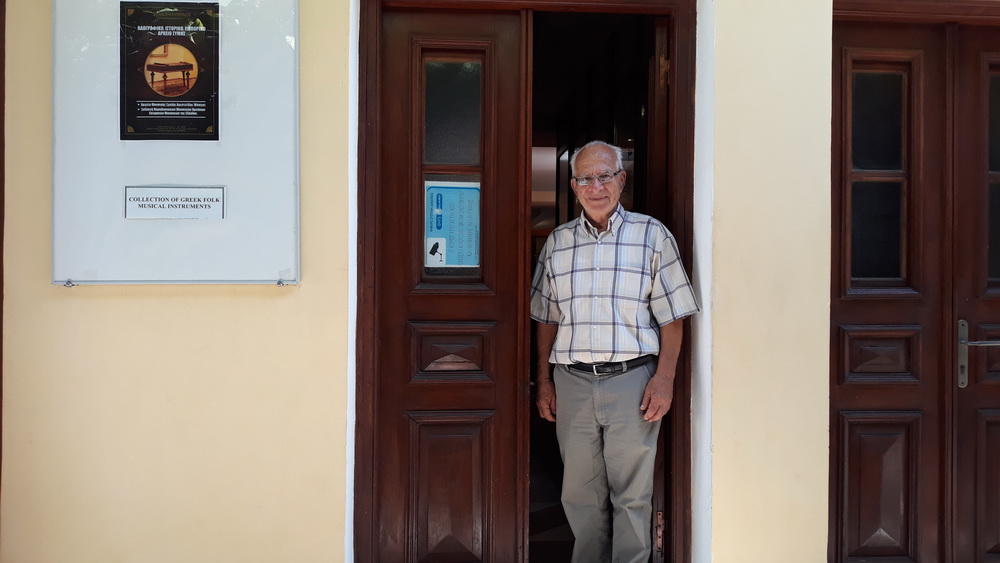 The ground floor level contains cabinets displaying musical instruments, pipes (floyera), Tsabouna (goat-skin bagpipe), violins, guitars, lyres, bouzouki and others, plus music books from the churches, some very old, and other musical items, all of which hail from Symi. It’s a large space, and Ioannis is on hand to tell you about them and show you the celestes and sandouri.