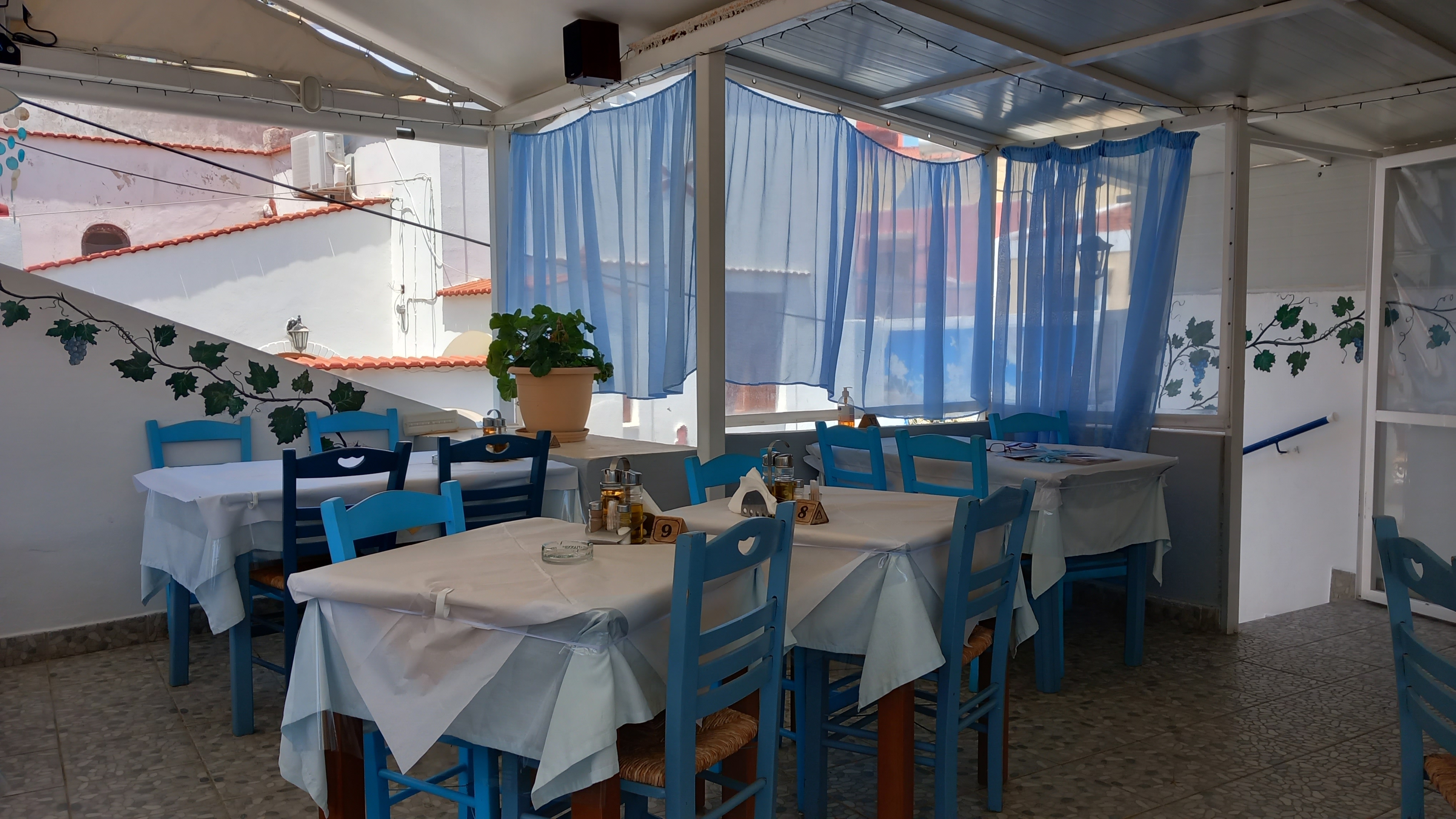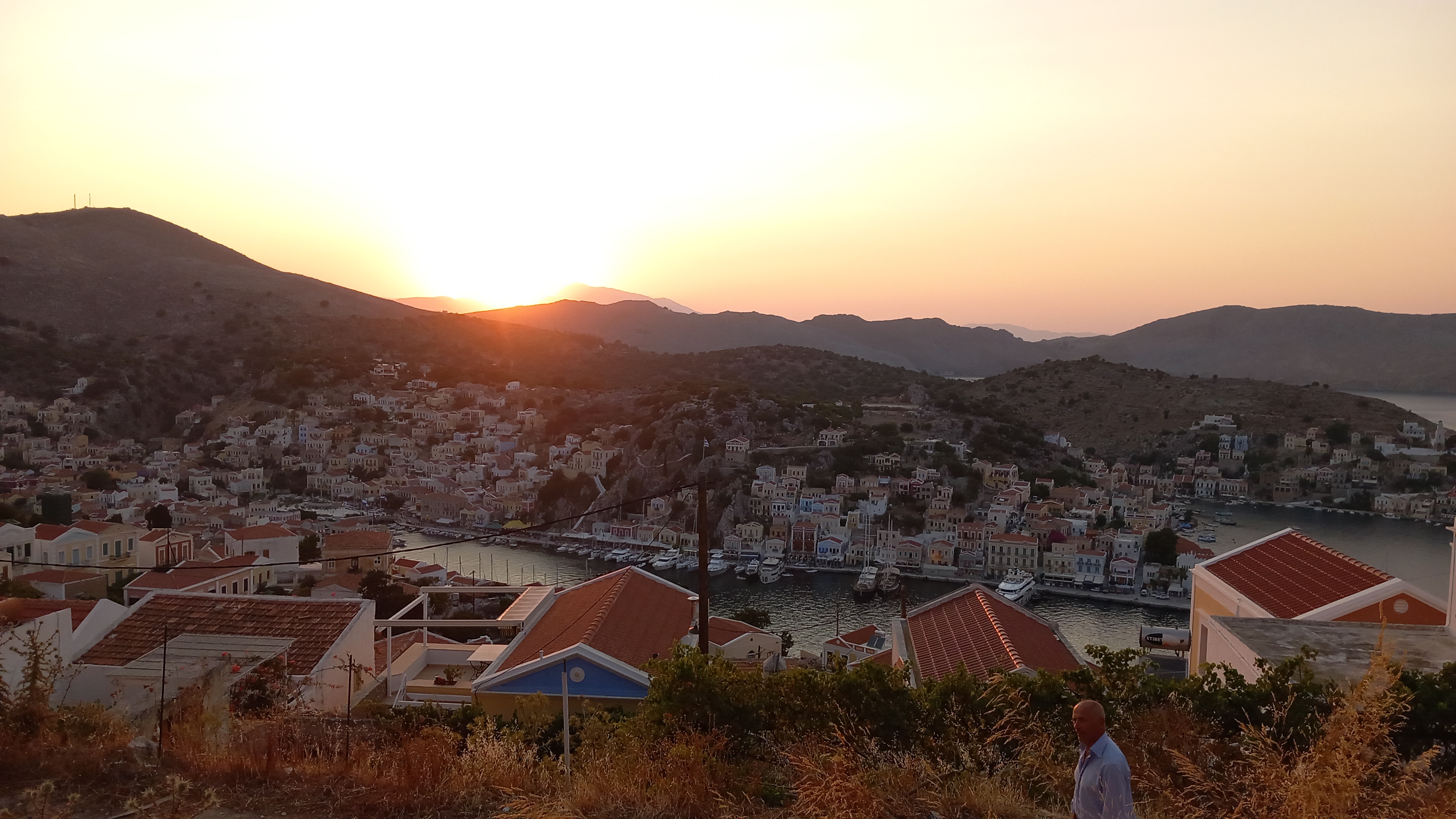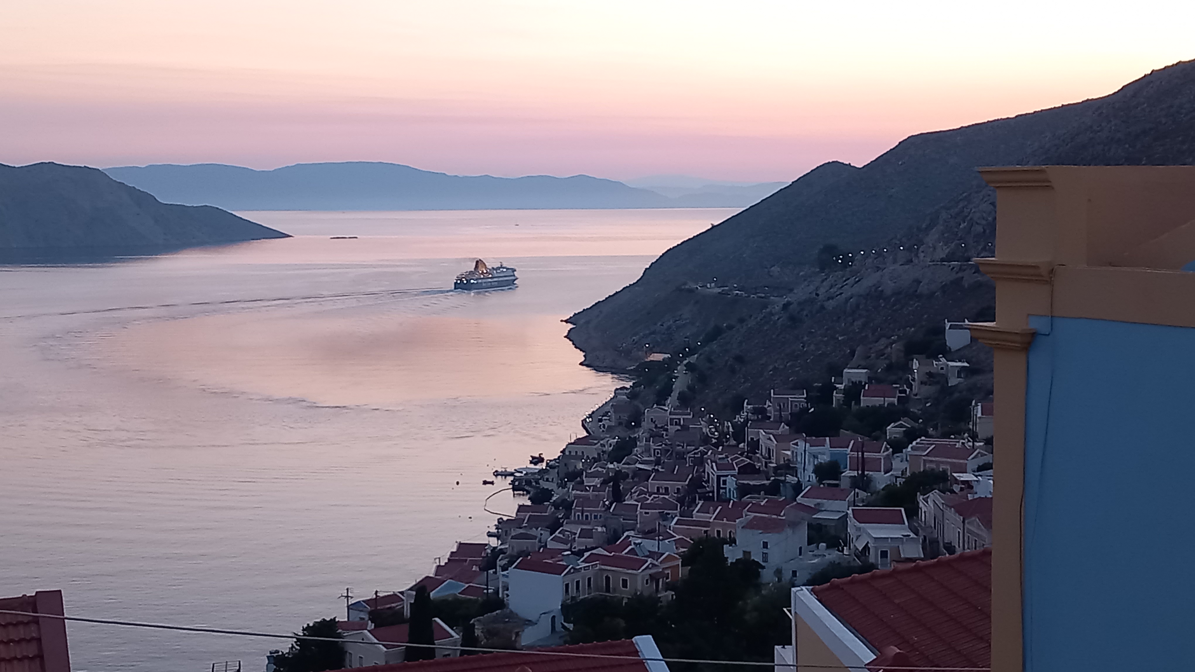 Being up and about when most people are asleep or finishing off their night out isn’t always a tranquil experience. Granted, the other morning, I was in the courtyard listening to absolutely nothing at all. No cockerels, no mopeds, no voices and not a breath of wind. Then, standing on the balcony some mornings, I am treated to conversations from the still-open kafeneion in Yialos, and the goodbyes hollered before the mopeds set off to grind up the hill. Other mornings, music is still playing somewhere, occasionally interspersed with ‘Opah!’ and on other days (nights), I hear the fishing boats throatily chugging out way before dawn.