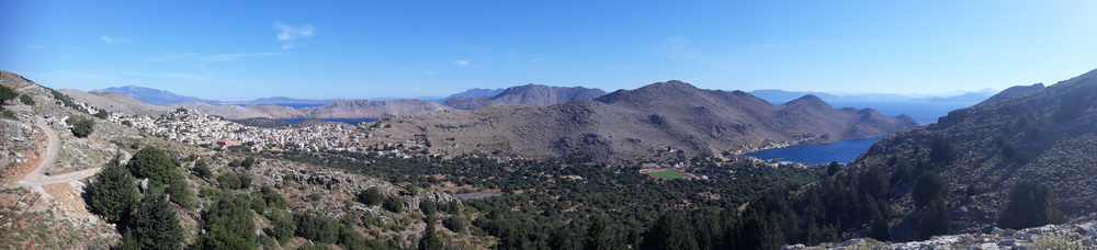 Continuing on and up, I checked my pedometer to see if I had made my target yet and found I hadn’t, so I pressed onwards and upwards a little further. Once I’d passed my target for the day (I am building back up slowly), I stopped to try a panoramic shot of the valley in which You can see from Datca in Turkey all the way down to where a few boats were anchored in the bay.