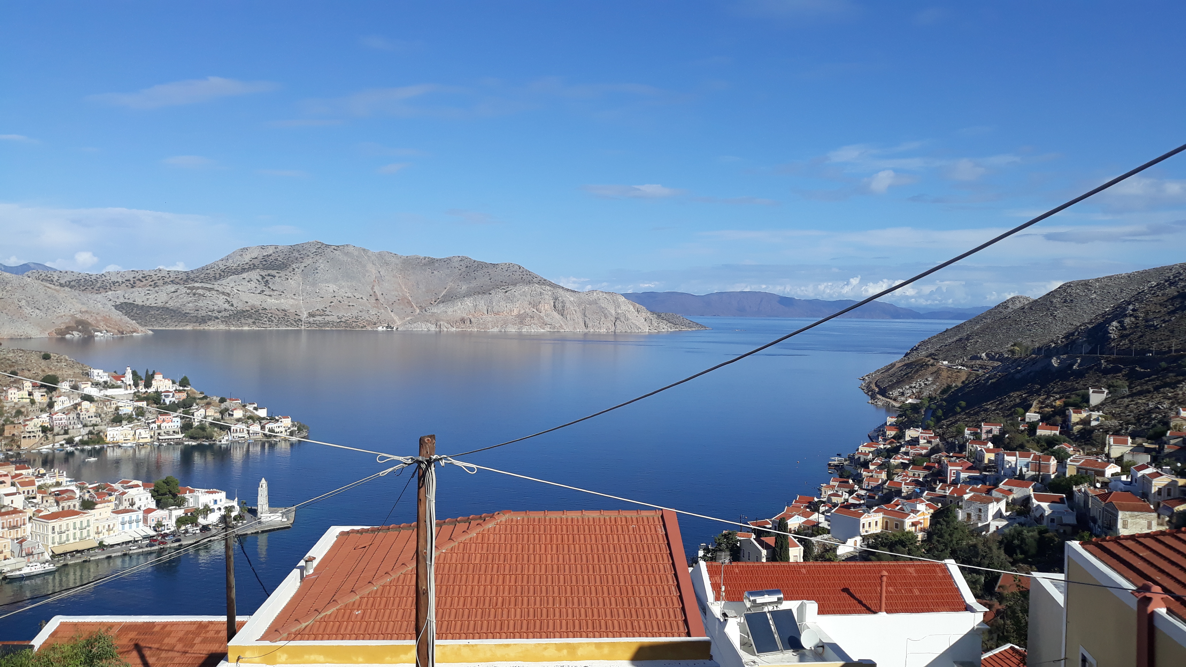 I was just looking through my photos for this time last year and saw that the village Christmas lights were already up by the end of November. I came home in the dark last night but don’t remember seeing them, and the photo I took may have been from slightly later in the month, but I can see the triangular trees of Yialos from the balcony already, so it looks like the decorating has begun.