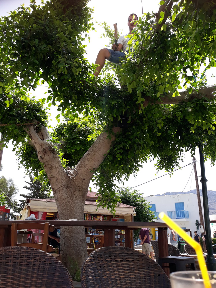 While on the around the island boat trip with the Poseidon, Yiannis and his crew, I was reminded of an incident in Tilos, so I thought, today, I would bring the two things together. Both events involved men in trees but for two different reasons. I’ll return to the rest of the boat trip and the Tilos visit in the future, but for today, a couple of unusual shots, with explanations. In order, Tilos…