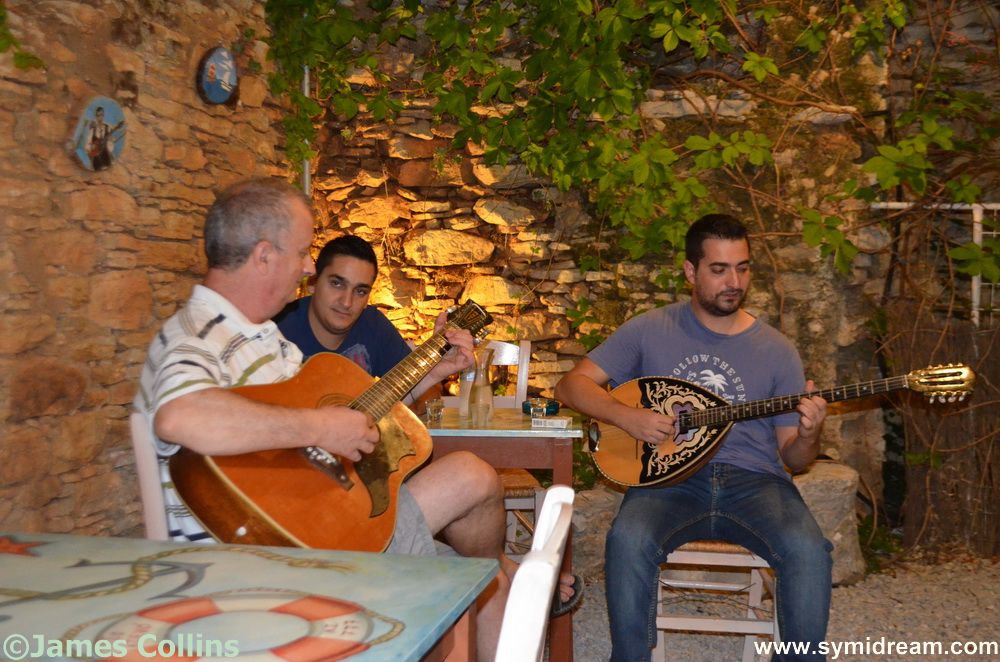 While we were there, early in the evening, we were treated to some bouzouki music and guitar, again provided by the family, and this music can go on well into the night, with impromptu dancing included as well. If you want the traditional Greek ‘thing’ this this is it. It’s taken us a while to getting around to going there but we’ll be back. It’s in the lane between the harbour front at ‘comfy chairs’ and the church square. You have three lanes heading from sea to backstreet in Yialos, one with Symi Tours in it, one with Taxas supermarket at the end, and the one in the middle, this one. You’ll find it.