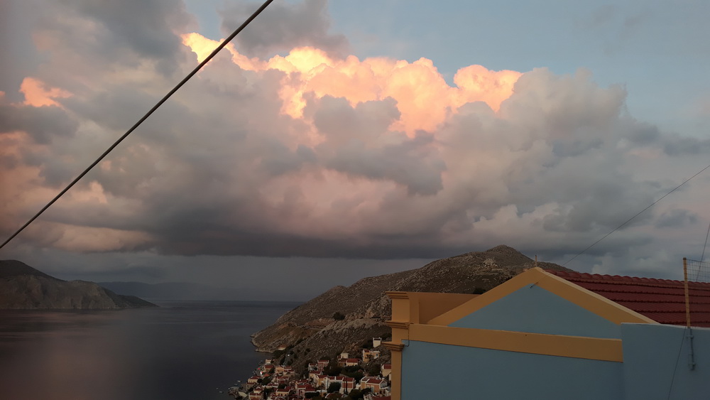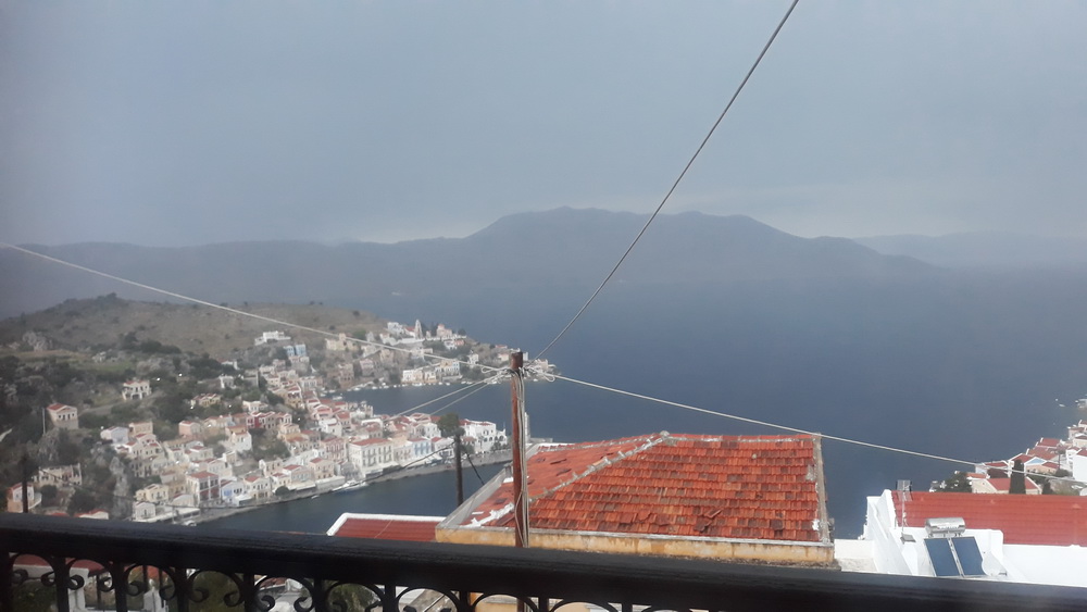 Rain stopped play on Friday and yet also started it. Basically, the trip to Rhodes was off as we didn’t fancy being drenched all morning, the air was vibrating with thunder, and the weather was not good, to say the least. Didn’t fancy walking down a waterfall (Kali Strata) to wait for the boat in the rain, though there is a shelter at the new quay now. At the other end, it would have been a case of shopping in a downpour, and none of it was urgent, so we decided to stay at home and go this week instead, weather permitting. On the other hand, it’s amazing what you get done when you daren’t have your internet plugged in…
