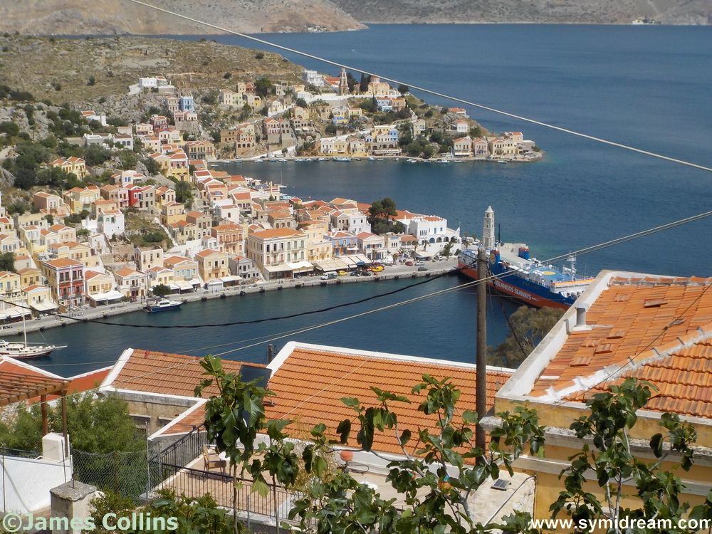Today though I thought I would share our balcony views with you. I was out there yesterday morning, taking a break and eating my natural yoghurt from the pot (as it was almost empty). I could smell the neighbours’ washing on the line on the roof next door, I could hear the school bell ring, the crane on the new jetty was clanking about and, a bit later, the Panagia Skiadeni arrived announcing itself from a distance like it was about to make a charge at the enemy.