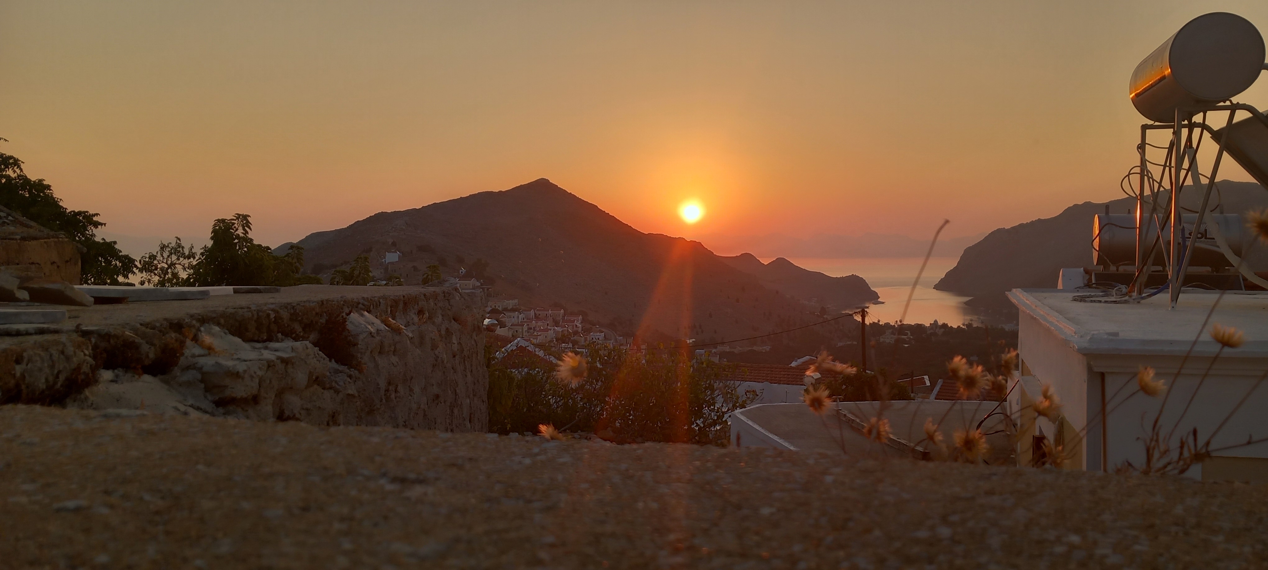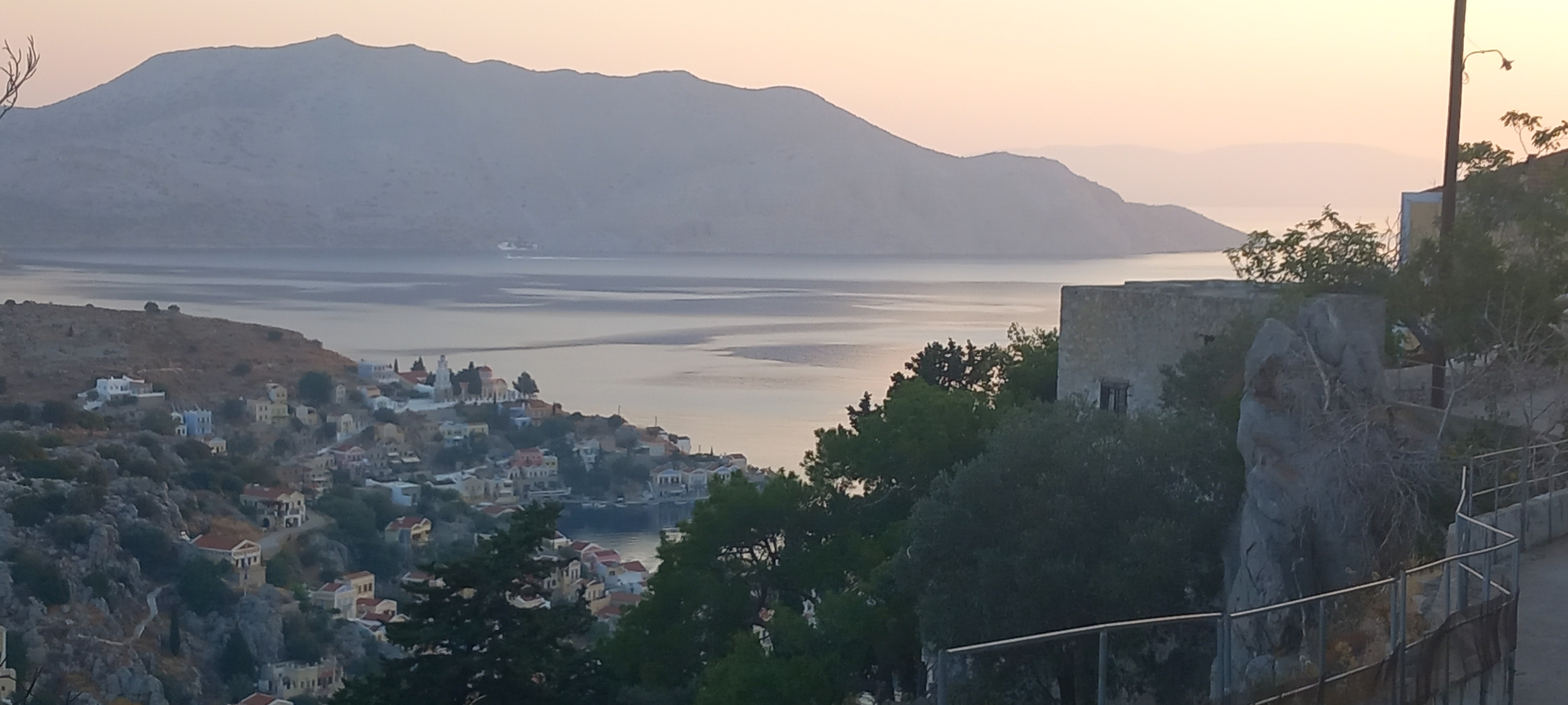 Sunday afternoon. Hot again, cicadas nearby, boats far away, fans turning, time passing, and people on social media discussing the prices of everything on Symi. Is the island going too far towards the expensive end of the market, and are people being greedy? That’s countered with the cost of living generally and more so here where everything has to come in by boat, and conversations about how it’s possible to spend a day here without spending a fortune. Free beaches if you bring your own shade, cheap food if you eat giros etc, and cheaper accommodation if you shop around.