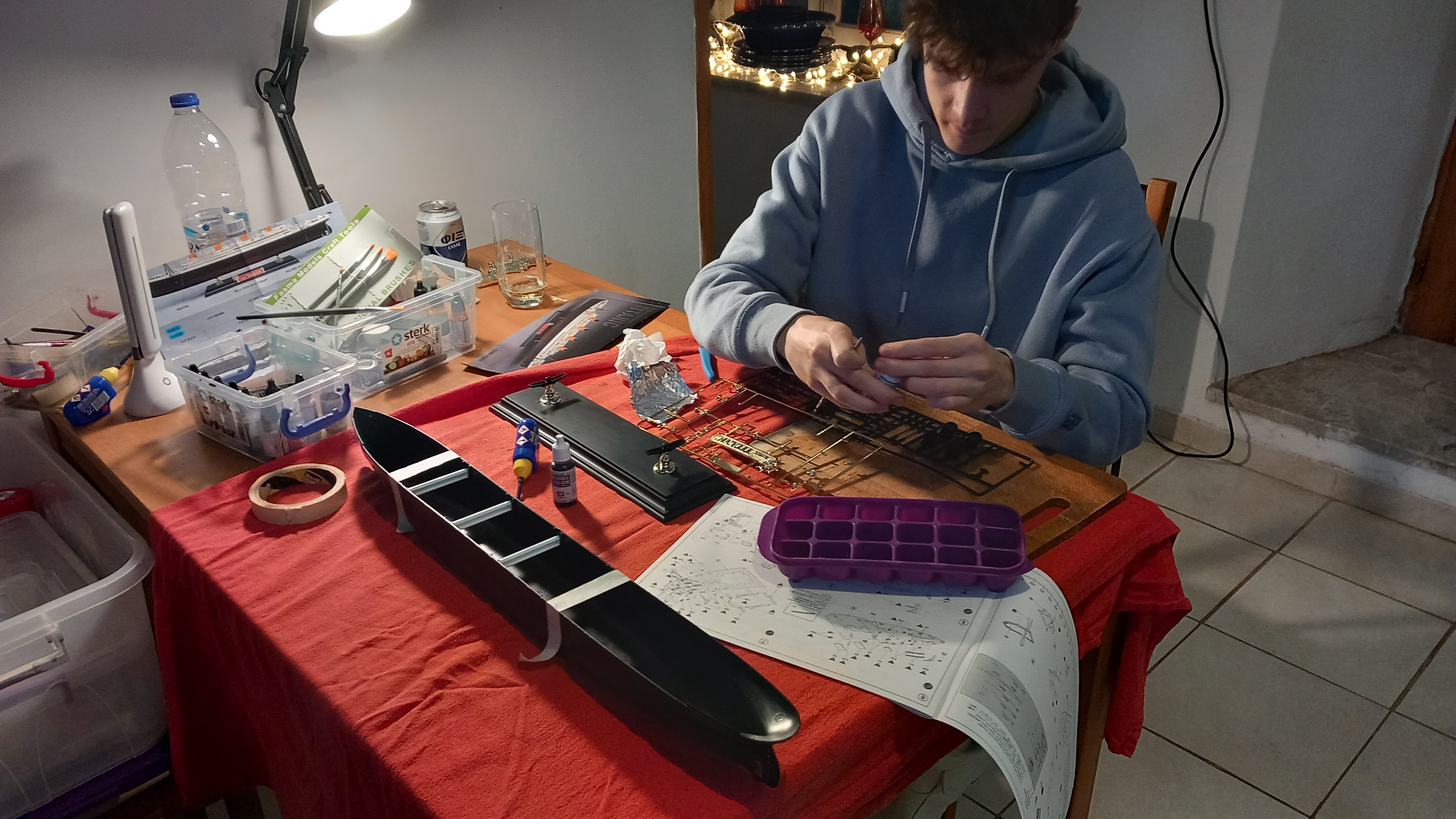 Yesterday afternoon was great fun. A piano lesson where we started on two new pieces, one from the course book, and another from a separate collection that’s also grade four standard, and that second piece is one my student must prepare on his own. At the Thursday lesson, we’re going to return to a Chopin piece (prelude in E minor) that he played a year ago, and we’re going to shift it up a level. After that hour, we spent two in the kitchen getting to grips with the huge 1/400 scale Titanic, doing what we can while we wait for the paints to arrive. (We could at least start an undercoat.)