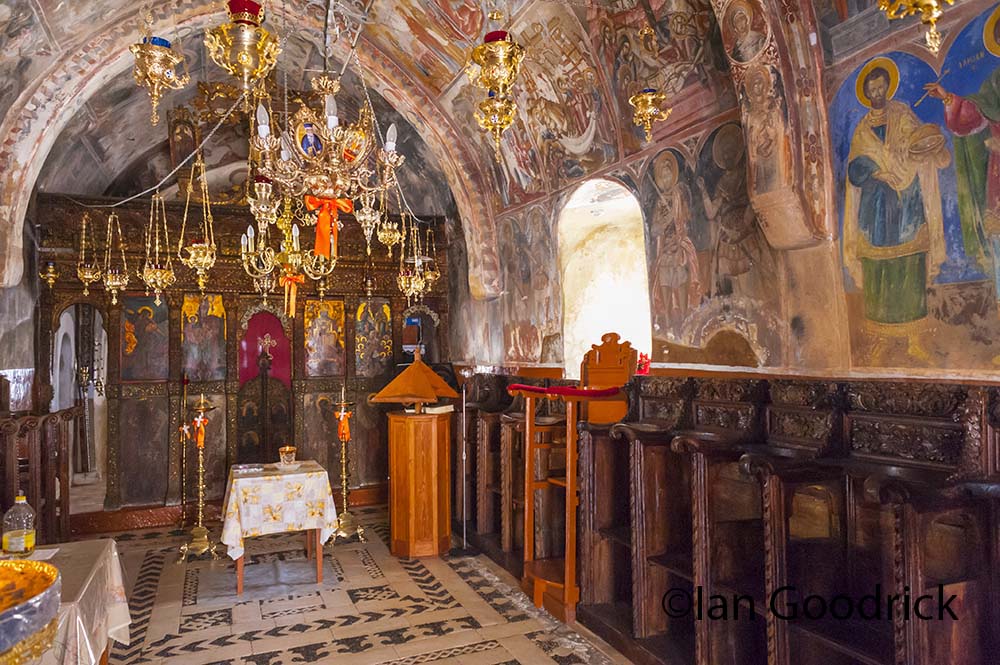 Here we got lucky. We stopped by the Megalo Sotiris monastery and it was open. Never slow in looking at a bonus monastery we all had a quick look around before heading off into the woods to see the wine presses.