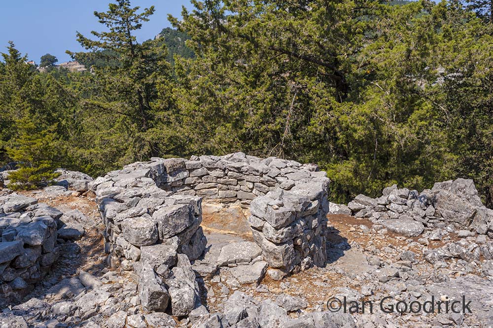 The woods thankfully were cooler and the hours walk wandering through the pine trees and looking at the presses and Mihail Kourkouniotis church, was not as tiring as we feared but the path we were following was across some rocky terrain.
