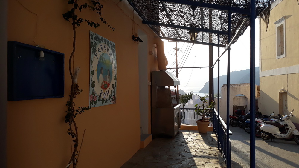 This other one is there because I thought it was about time we had a shot of Yialos and the boats. It’s looking a bit busier down there right now. The taxi boats are going out, the beaches are open, there are more visitors, and there’s more activity. The same goes for the village where there are more people about in the late afternoon/evening.