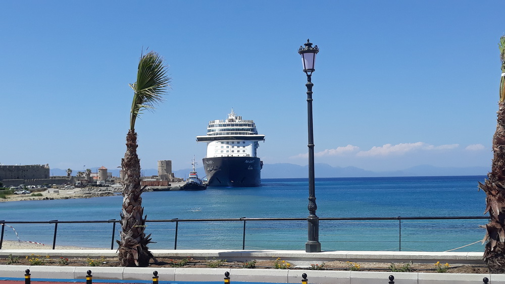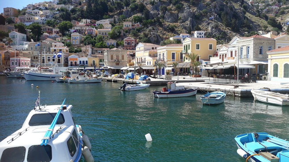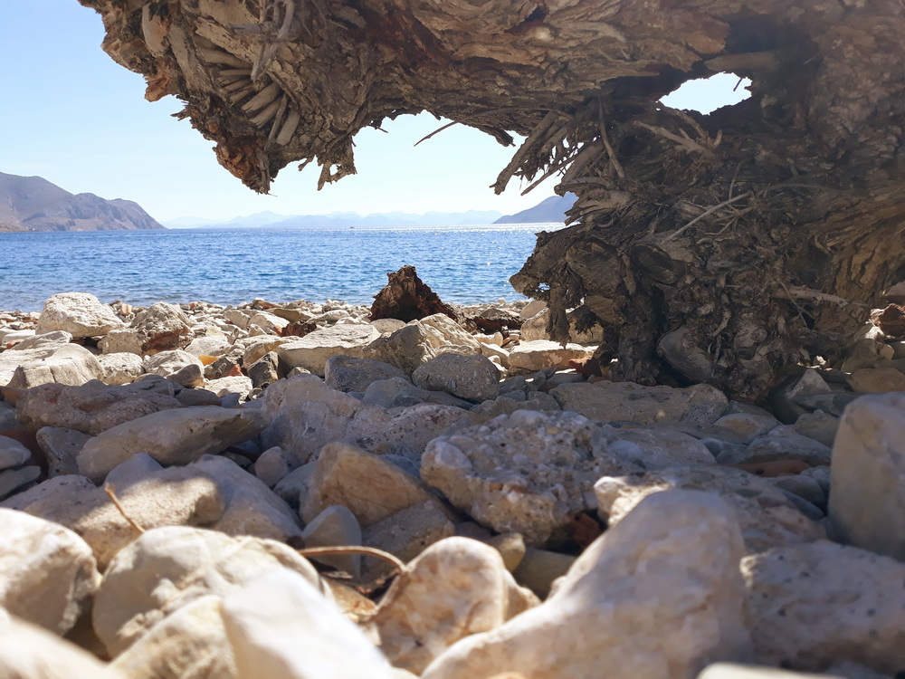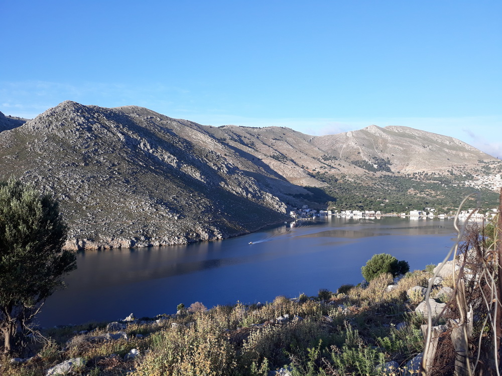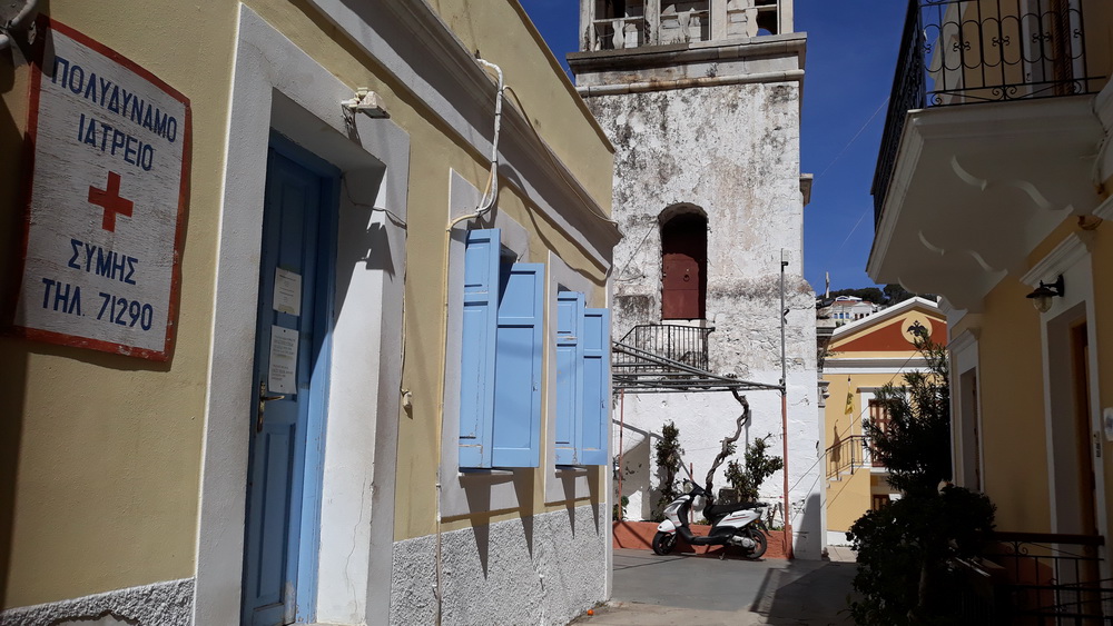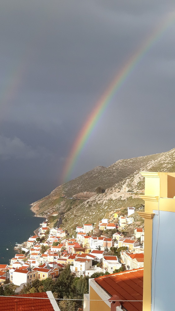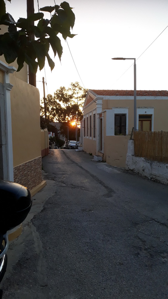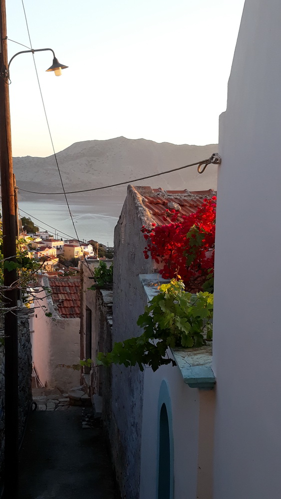 We get it from time to time. I mean the Symi wind, and we had it for three or four night’s running at the end of last week and over the weekend. The days were a little blustery, but the wind turned to force five, rising seven from the northwest and west in the late afternoon. That caused the shutters on that side of the house to panic a little, and we ended up with most of them closed. It was warm enough until after dark, and even then, not cold, but it’s blown the vine about a bit, and the bougainvillea petals now adorn the corridor inside the house like bridal confetti. As soon as you sweep them up, more blow in because now it’s warmer, the door is open.