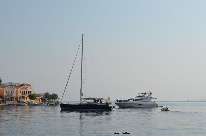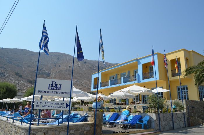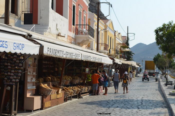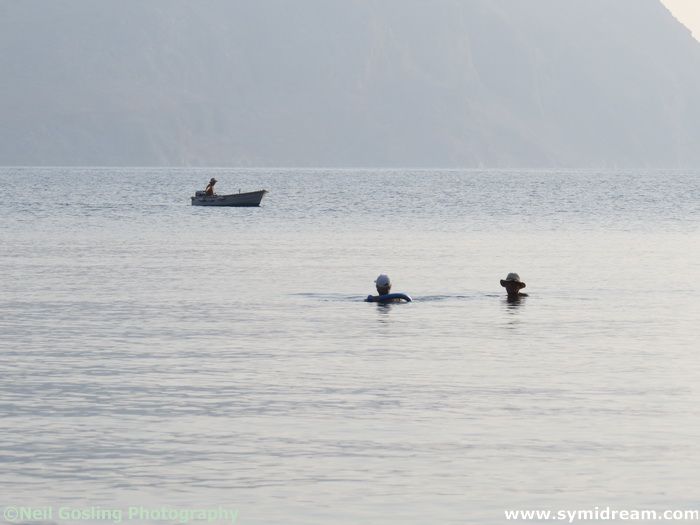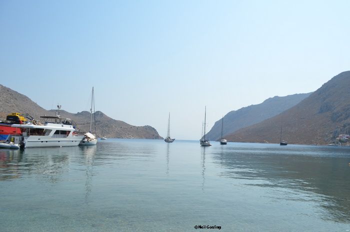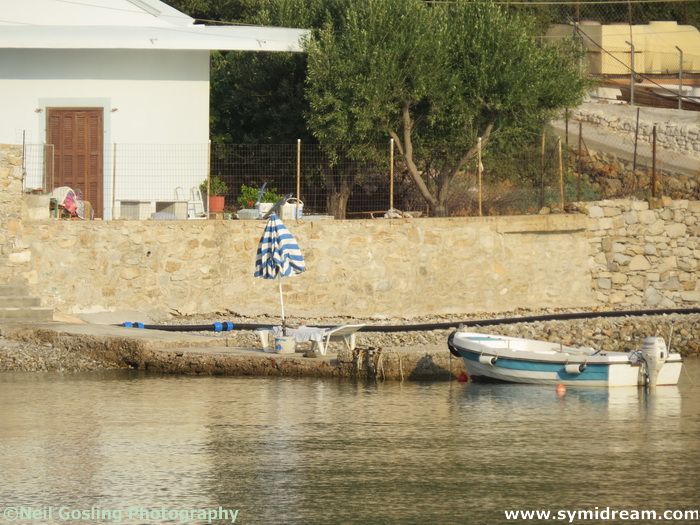 Today’s photos, by the way, were taken on Friday when we popped into Yialos to see if there was any post, stopped for a bite to eat and had a bit of a day off. There were many people waiting for the taxi boats, having the photos taken at the anchors and milling about. Apparently it has been very busy in Yialos with the Poseidon’s day trips being popular and often nearly full. Book early!