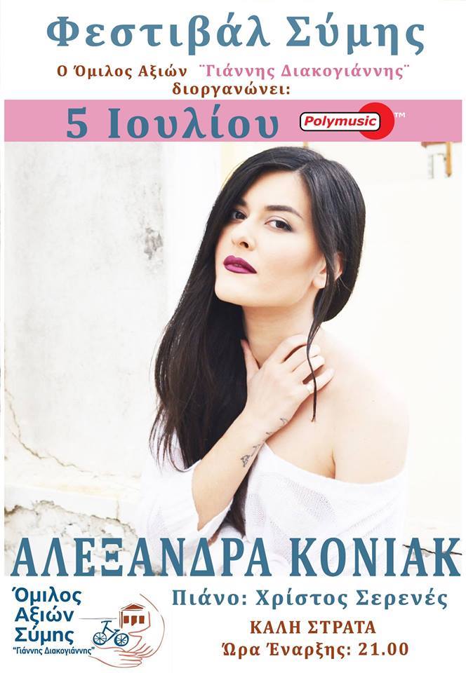 It’s going to be a fun weekend here on Symi, Greece. There’s a festival being held on the Kali Strata on Sunday, a concert by Alexandria Koniak, with Christos Serenes on the piano, organised by Ομιλός Αζιών Σύμις and starting at 21.00. Everyone is welcome and it is all completely free.